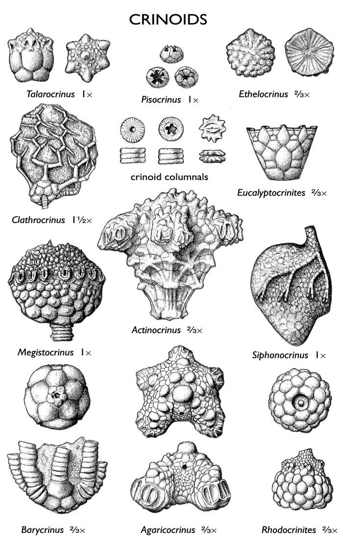 Limestone formations of Devonian age are thin in Kentucky but may contain brachiopods, crinoids, and corals. Before the end of Devonian time, the sea floor became covered with an organic black muck. This muck is now a hard black shale (an oil shale) which is one of the most distinctive of all geological formations in Kentucky. It is easily recognized by its black color and thin, hard, brittle layers. Fossil remains of the earliest known trees have been found in this formation. When Mississippian seas cleared (358 to 323 million years ago), thick layers of limestone were deposited in the warm, shallow waters. Brachiopods, bryozoa, corals, and crinoids were common forms during that geologic time period. The seas receded briefly at the end of the Mississippian Period, as indicated by the uneven, eroded surface on which subsequent Pennsylvanian sediments were deposited.